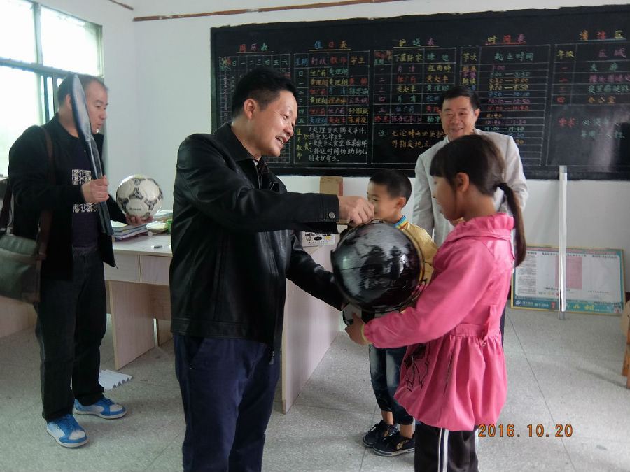 孩子们的健康成长、乡村教育事业的发展是我们最关心的问题。第一书记刘之杨、村支书陈明远、湖科精准扶贫工作队队长张劲松带我们来到位于村委会对面的学校,这个学校有幼儿园两个班,一到四年级四个班。每个班的教学设备都很先进,教室里配有多媒体投影仪和空调。但是,根据我们前期的了解,他们的体育设施、文体用品比较缺少,这次,我们特地给小朋友们带来了排球、篮球、足球、乒乓球拍、乒乓球、羽毛球拍、羽毛球、跳绳、哑铃等体育用品以及地球仪、七巧板等学习娱乐用品,为孩子们的成长、乡村教育事业的发展尽一份我们的绵薄之力。孩子们拿到这些文体用品都非常开心,年轻有为的黄校长对Beat365唯一官方网站党总支的用心表示了感谢。
