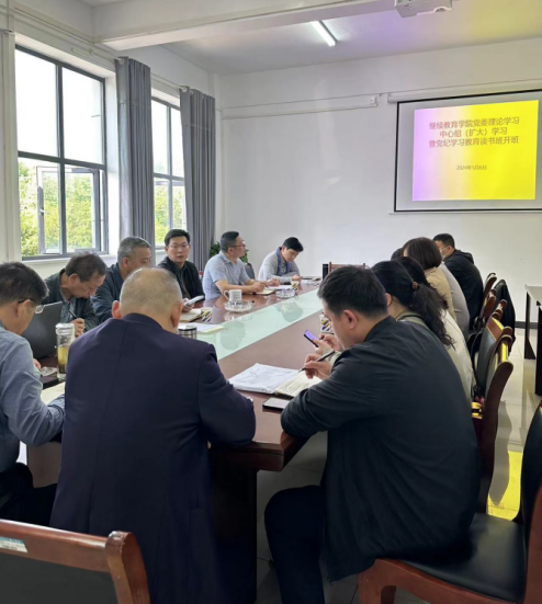 5月6日上午,Beat365唯一官方网站党委在实训楼附楼210会议室开展了党委理论学习中心组(扩大)学习暨党纪学习教育读书班开班仪式。党委第一书记樊熙参加会议并讲话,党委书记金延安主持会议,继教院全体教职工参加会议。